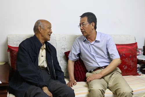李贵富书记与老党员王岳亲切交谈