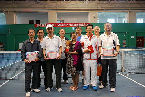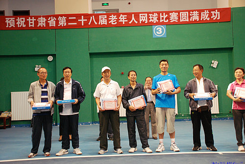 9月5日,我校老年网球队在省体工二队,参加“甘肃省第二十八届老年人网球比赛”,经过3天的友谊比赛,我校荣获团体第三名的好成绩。展振岐、崔凤德荣获男子甲组第一名,魏建康、金鑫荣获男丙一组第二名,比赛颁发了奖杯、奖品及个人荣誉证书。